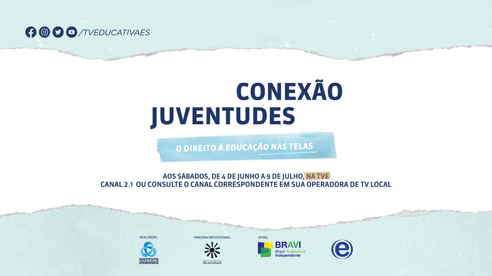 A partir de junho a TVE-ES vai exibir os documentários vencedores do “Edital Conexão Juventudes”, um projeto do Instituto Unibanco em parceria com o Instituto de Políticas Relacionais (IPR) e a Brasil Audiovisual Independente (Bravi). Os filmes mostram os desafios educacionais de jovens de diferentes estados durante a pandemia, passando por questões que abordam gravidez na adolescência, falta de acesso à internet e necessidade de trabalhar para contribuir com a renda familiar. A TVE-ES vai exibir um documentário por semana, sempre aos sábados, a partir do dia 04 de junho às 14 horas, no canal 2.1.