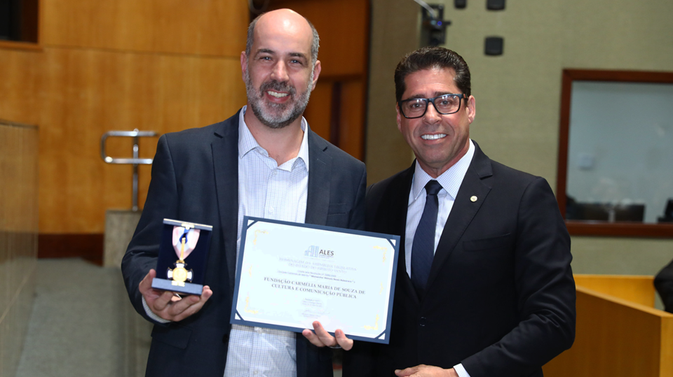 A Fundação Carmélia Maria de Souza de Cultura e Comunicação Pública, que faz a gestão da TVE e da Espírito Santo FM 89.1, recebeu a Comenda Monsenhor Rômulo Neves Balestrero. A honraria foi entregue na noite dessa segunda-feira (05), em sessão solene na Assembleia Legislativa do Espírito Santo (Ales). O título é destinado a instituições de destaque na promoção do desenvolvimento social do Estado.